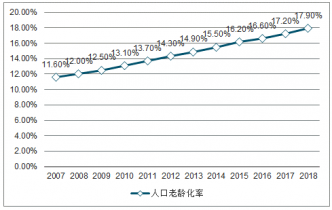 2007-2018年中國人口老齡化率趨勢