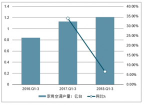 2016-2018年中國家用空調(diào)產(chǎn)量及增長走勢