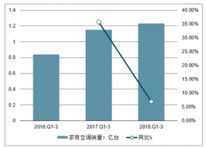 2016-2018年中國家用空調(diào)銷量及增長走勢