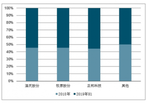 2018-2019年生豬養(yǎng)殖養(yǎng)殖龍頭企業(yè)市場份額占比