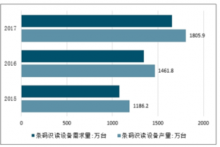 2015-2017年條碼識讀設(shè)備市場產(chǎn)銷情況
