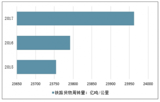 2015-2017年我國鐵路貨物周轉(zhuǎn)量走勢