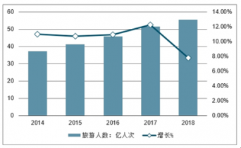 2014-2018年國(guó)內(nèi)游人數(shù)統(tǒng)計(jì)及增長(zhǎng)情況