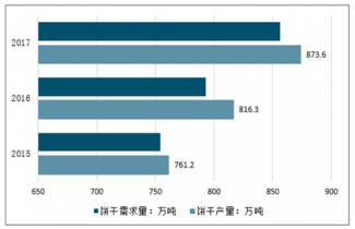 2015-2017年中國(guó)餅干行業(yè)產(chǎn)銷量情況