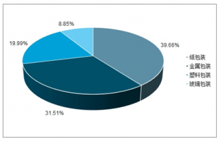目前,中國市場上應用最廣泛的是紙質(zhì)包裝和塑料包裝產(chǎn)品,其次是金屬包裝和玻璃包裝。據(jù)調(diào)查數(shù)據(jù)統(tǒng)計顯示,紙包裝、塑料包裝、金屬包裝和玻璃包裝合計實現(xiàn)營業(yè)收入9433.74億元,紙和紙板制造占整個包裝主營業(yè)務收入的39.66%,其次分別為金屬包裝、塑料包裝和玻璃包裝,分別占比31.51%、19.99%和8.85%。