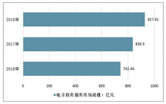 2017年電子政務(wù)服務(wù)市場(chǎng)規(guī)模為836.5億元,2019年電子政務(wù)服務(wù)市場(chǎng)規(guī)模達(dá)927.92億元,同比增長(zhǎng)10.93%。