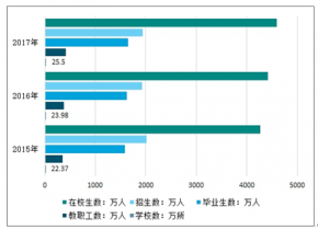 2015-2017年我國(guó)幼兒教育學(xué)校數(shù)、教職工數(shù)及學(xué)生數(shù)情況