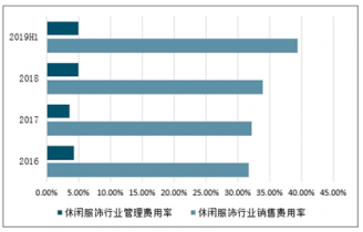 2016-2019年上半年中國(guó)休閑服飾行業(yè)銷售、管理費(fèi)用率