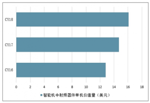 智能機(jī)中射頻器件單機(jī)價(jià)值量(美元)