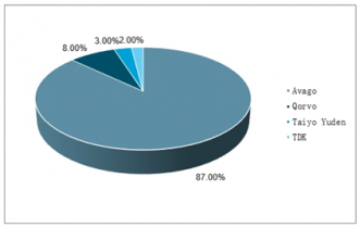 美國和日本壟斷濾波器行業(yè):從濾波器的全球競爭格局上看,美國和日本基本壟斷了整個行業(yè)。在SAW濾波器領(lǐng)域,日本企業(yè)Murata、TDK和TaiyoYuden合計占據(jù)市場80%以上的份額;在BAW濾波器領(lǐng)域,Broadcom(博通)/Avago和Qorvo兩家廠商占據(jù)市場90%以上的份額。