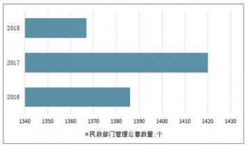 2016年我國(guó)民政部門管理的公墓數(shù)量為1386個(gè),2017年我國(guó)民政部門管理的公墓數(shù)量為1420個(gè),2019年我國(guó)民政部門管理的公墓數(shù)量為1367個(gè)。