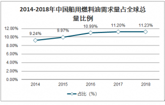 2014-2018年中國(guó)船用燃料油需求量占全球總量比例