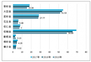 2017年全球主要食用油產(chǎn)量情況(百萬噸)