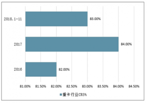 2016-2018年中國(guó)重卡行業(yè)CR5變化情況