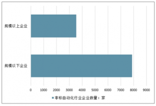 在2000年,國內(nèi)做非標(biāo)設(shè)備比較知名的只有珠三角和長三角的一些臺(tái)灣廠,這些廠加起來30家左右,這三十家約占到市場份額的70%左右。近年來,隨著市場需求的不斷擴(kuò)大,越來越多的企業(yè)開始參與這一行業(yè)。截至2019年,我國非標(biāo)自動(dòng)化行業(yè)規(guī)模以下企業(yè)有7872家,而規(guī)模以上企業(yè)為3534家。可看出,新增的市場被眾多的小廠家所占領(lǐng)。
