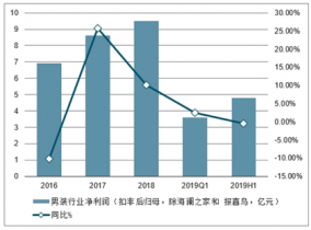 2016-2019年上半年中國(guó)男裝行業(yè)凈利潤(rùn)(扣非后歸母,除海瀾之家和報(bào)喜鳥(niǎo),億元)