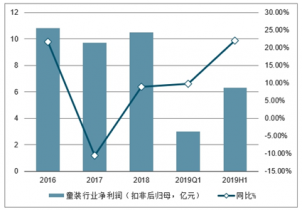 2016-2019年上半年中國童裝行業(yè)凈利潤(扣非后歸母,億元)