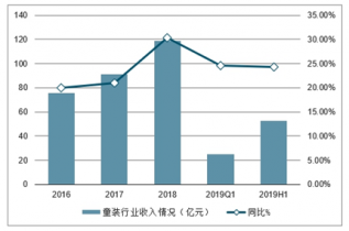 2016-2019年上半年中國童裝行業(yè)收入情況(億元)