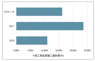 2016-2018年1-6月湛江商品房施工面積增長走勢