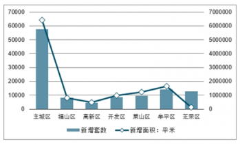 2019年煙臺(tái)六區(qū)商品住宅新增套數(shù)及面積情況