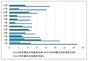 2017-2019年Q1中國(guó)光伏發(fā)電棄光率月度變化情況