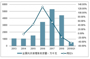 2013-2019年Q1全國(guó)光伏新增裝機(jī)容量統(tǒng)計(jì)及增長(zhǎng)情況