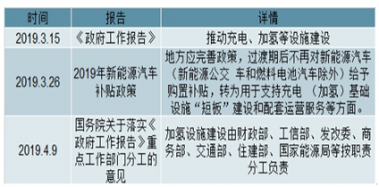 2019 年《政府工作報告》修訂版本提到,促進形成強大的國內(nèi)市場,持續(xù)釋放內(nèi)需潛力,在汽車市場中,要穩(wěn)定汽車消費,繼續(xù)執(zhí)行新能源汽車購置優(yōu)惠政策,推動充電、加氫等設施建設。