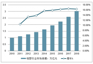2010-2018年中國(guó)母嬰行業(yè)市場(chǎng)規(guī)模及增長(zhǎng)走勢(shì)