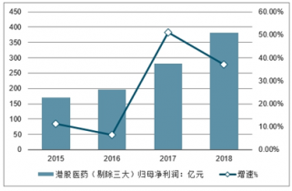 2015-2018年港股醫(yī)藥(剔除三大)歸母凈利潤及增長情況
