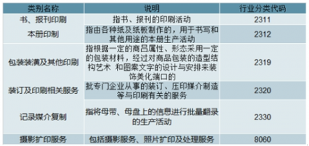 其中,“印刷復(fù)制服務(wù)”中類歸屬于“文化輔助生產(chǎn)和中介服務(wù)”大類,包括“書、報(bào)刊印刷”“本冊(cè)印制”“包裝裝潢及其他印刷”“裝訂及印刷相關(guān)服務(wù)”“記錄媒介復(fù)制”“攝影擴(kuò)印服務(wù)”6項(xiàng)小類。