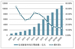 2009-2020年中國(guó)在線旅游市場(chǎng)交易規(guī)模及預(yù)測(cè)(單位:億元,%)