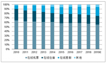 2010-2019年中國(guó)在線旅游市場(chǎng)結(jié)構(gòu)變化情況(單位:%)