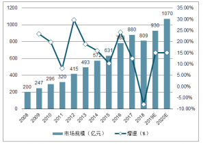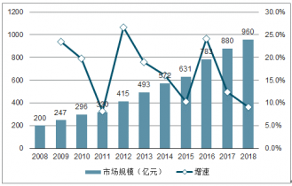 2008-2018年我國口腔醫(yī)療服務(wù)市場規(guī)模及增速