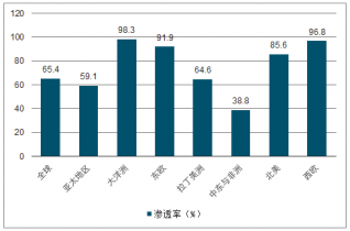 2018年各區(qū)域洗衣機滲透率(%)