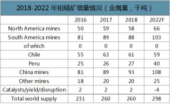全球鉬精礦產(chǎn)量(45%鉬精礦,萬(wàn)噸)