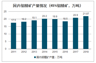 2011-2018年國(guó)內(nèi)鉬精礦產(chǎn)量情況(45%鉬精礦,萬(wàn)噸)