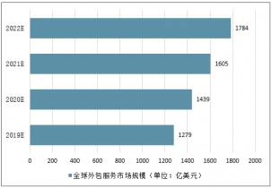 2019-2022年全球外包服務(wù)市場規(guī)模(單位:億美元)