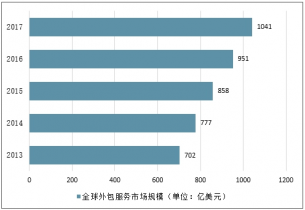2013-2017年全球外包服務(wù)市場規(guī)模(單位:億美元)