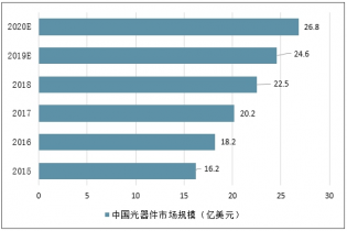 2015-2020年中國光器件市場規(guī)模走勢
