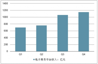 2013年至2017年間,我國電子商務交易額從10.40萬億增長到29.16萬億,年均復合增長率為29.4%,2019年仍然保持快速增長趨勢。2017年我國B2B平臺服務營業(yè)收入規(guī)模為630億元,同比增長18.9%。2019年全國網(wǎng)上零售額90065億元,同比增長23.9%。其中,實物商品網(wǎng)上零售額70198億元,增長25.4%,占社會消費品零售總額的比重為18.4%,比2017年提高3.4個百分點。2019年電子商務平臺收入3667億元,同比增長13.1%,電子商務平臺收入仍然保持快速增長。其中,第四季度平臺收入最高,為1147億元。