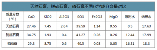天然石膏、脫硫石膏、磷石膏不同化學成分含量對比