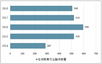 2014-2018年中國(guó)在線教育行業(yè)融資數(shù)量情況