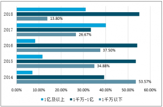 從行業(yè)融資額度來(lái)看,在線教育在經(jīng)過(guò)最近幾年商業(yè)模式試錯(cuò)和市場(chǎng)驗(yàn)證后,領(lǐng)跑企業(yè)迎來(lái)快速發(fā)展期,備受資本青睞,大額融資不斷。2014年,中國(guó)在線教育行業(yè)的投融資額度在1千萬(wàn)以下的占比達(dá)53.57%;而至2019年行業(yè)融資額度在1千萬(wàn)以下的融資事件僅占13.8%,而1千萬(wàn)以上的大額融資事件數(shù)量則高達(dá)86.2%。