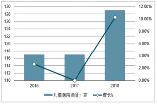 2016-2018年我國兒童醫(yī)院數(shù)量及同比增長走勢