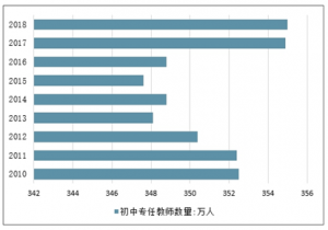 2010-2018年中國初中專任教師數(shù)量走勢