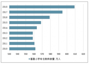 2010-2018年中國(guó)普通小學(xué)專(zhuān)任教師數(shù)量走勢(shì)