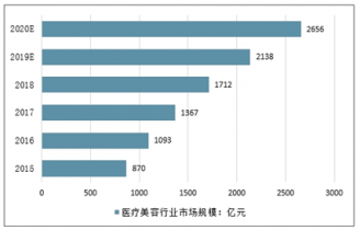2019年中國(guó)醫(yī)療美容行業(yè)市場(chǎng)規(guī)模達(dá)1712億元,預(yù)計(jì)2020年將突破2500億元。