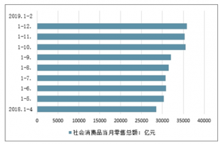2019年1-2月全國社會(huì)消費(fèi)品零售總額超6.6萬億。2019年1-12月,全國社會(huì)消費(fèi)品零售總額380987億元,比上年增長9.0%(扣除價(jià)格因素實(shí)際增長6.9%,以下除特殊說明外均為名義增長),增速比1-11月略低0.1個(gè)百分點(diǎn)。其中,限額以上單位消費(fèi)品零售額145311億元,增長5.7%。進(jìn)入2019年1-2月,全國社會(huì)消費(fèi)品零售總額66064億元,同比名義增長8.2%。其中,限額以上單位消費(fèi)品零售額23096億元,增長3.5%。