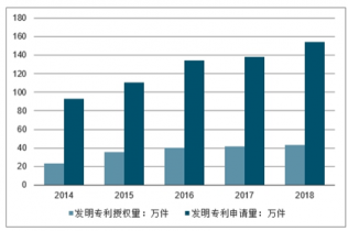 2014-2018年中國發(fā)明專利授權量、申請量走勢