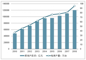 2010-2018年中國(guó)房地產(chǎn)投資及電梯產(chǎn)量走勢(shì)情況